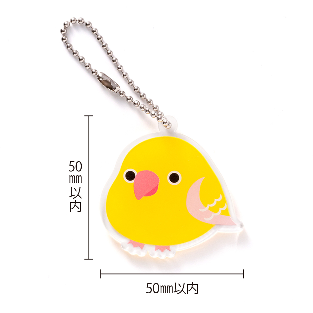 商品名 アクリルキーホルダー ボールチェーン オリジナル形状(片面印刷タイプ)W50×H50mm以内 本体素材 透明アクリル3mm厚 本体サイズ オリジナル輪郭カット W50×H50mm以内 本体印刷色 片面フルカラー印刷+白押さえ 本体印刷色方法 UVインクジェット印刷 本体付属品 ボールチェーン付 包装 OPP袋入 テンプレート ダウンロード 納期 【通常納期】