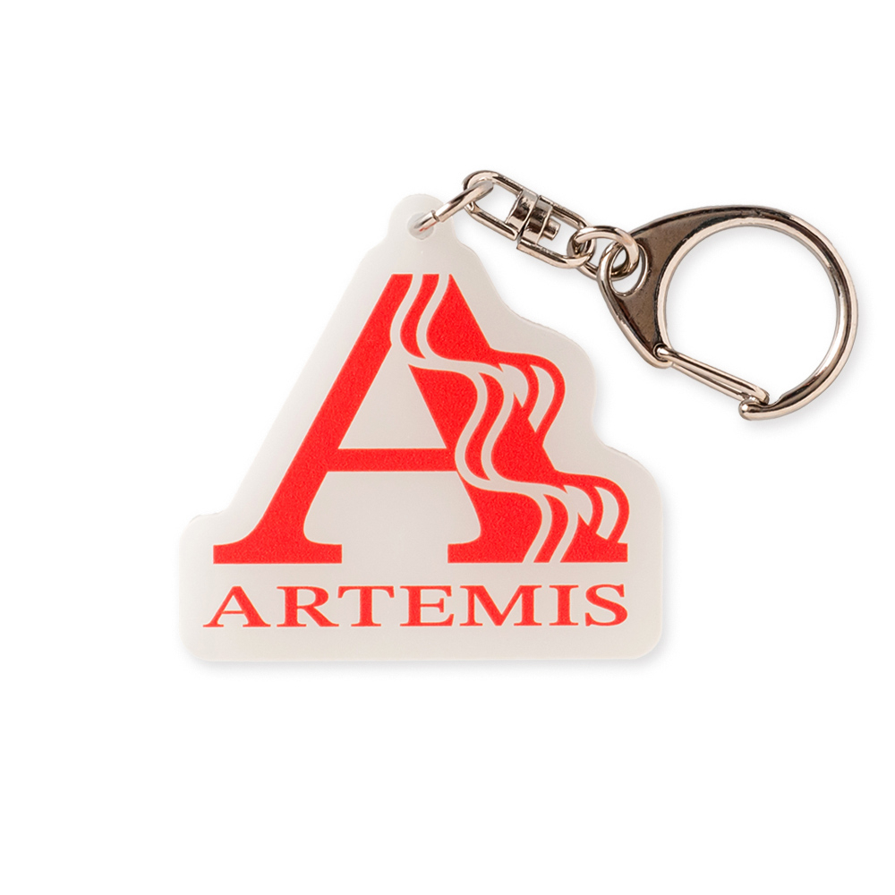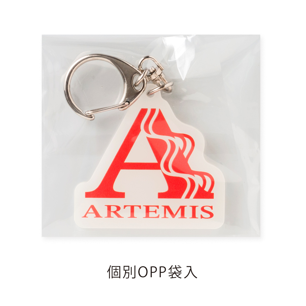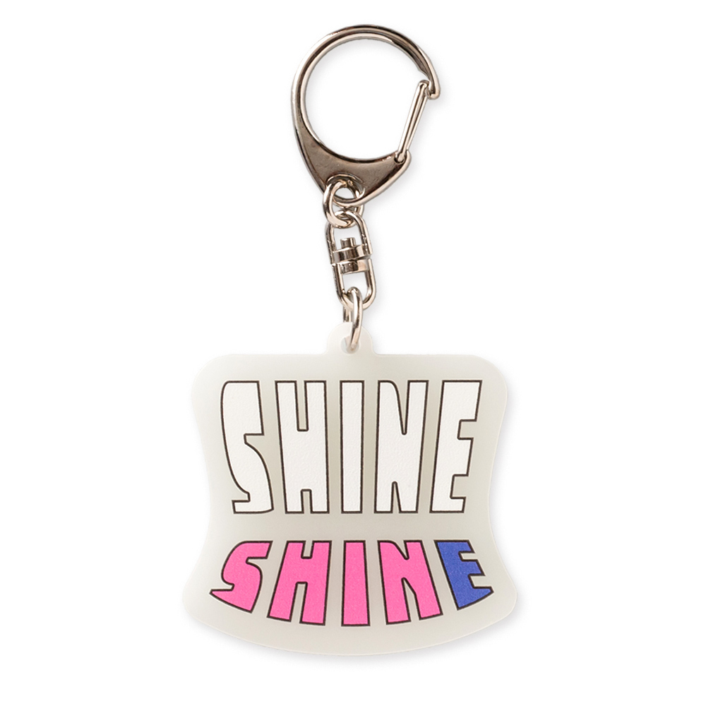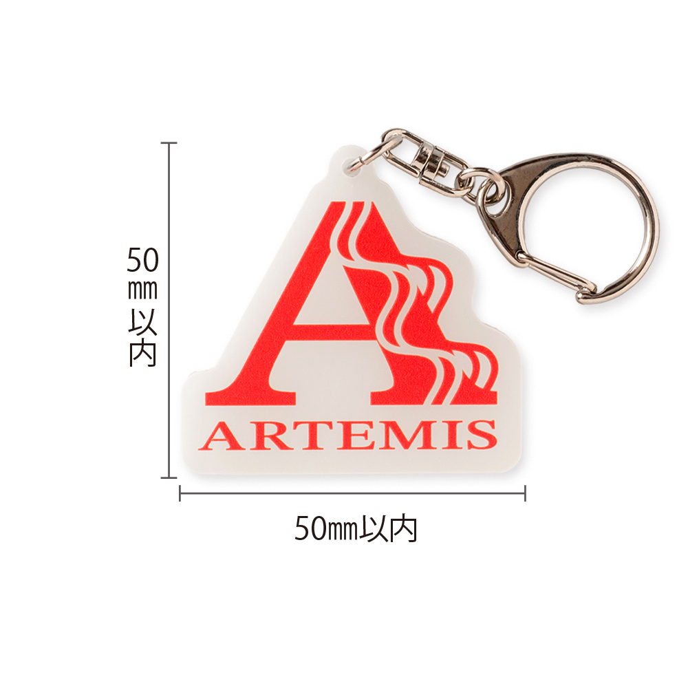 50×50mm以内の自由輪郭カットに対応。蓄光ブルーアクリルは暗闇で発光し、視認性と遊び心のある仕上がり。ナスカン仕様でバッグや鍵に簡単に装着でき、イベント配布・ロゴキーホルダーに人気のサイズです。