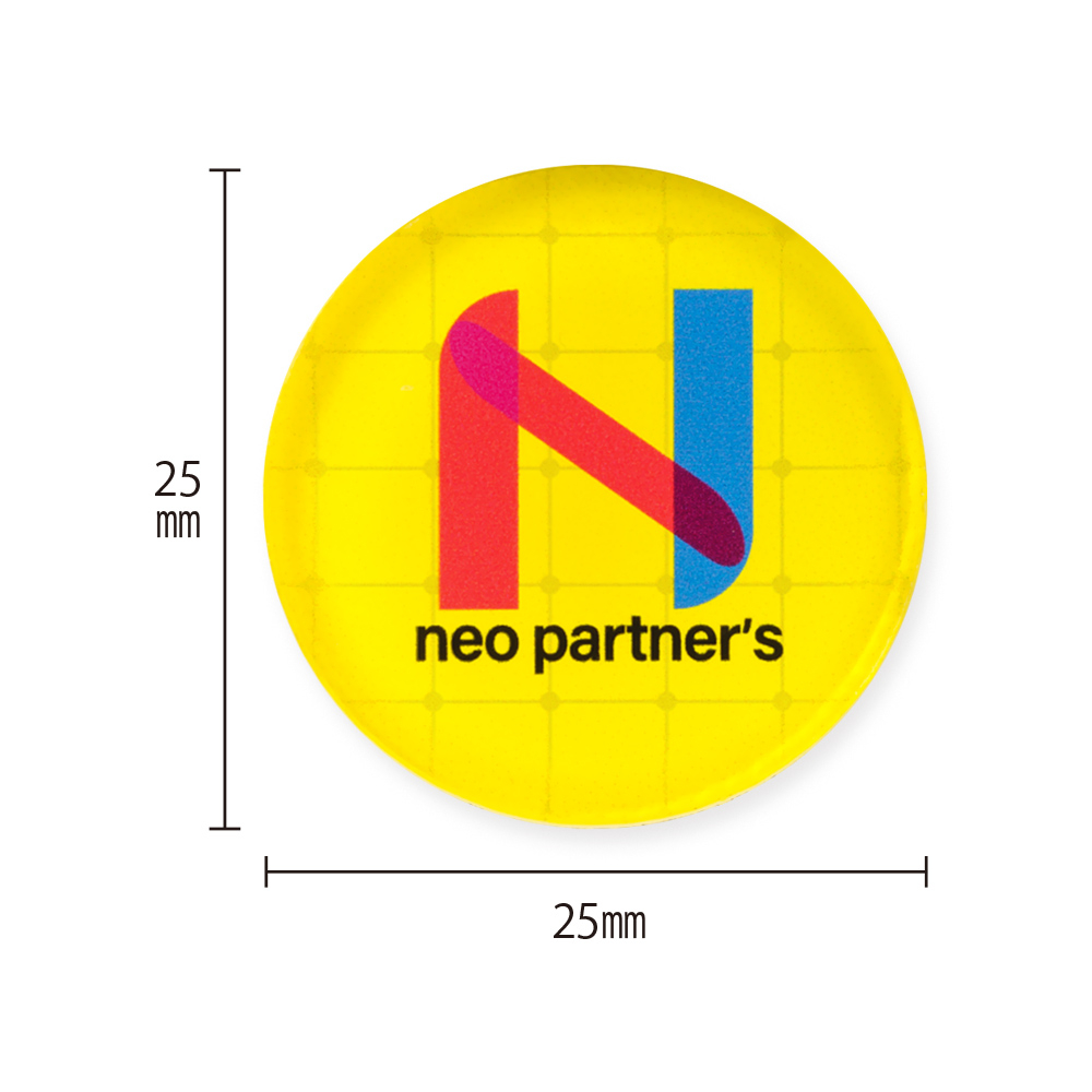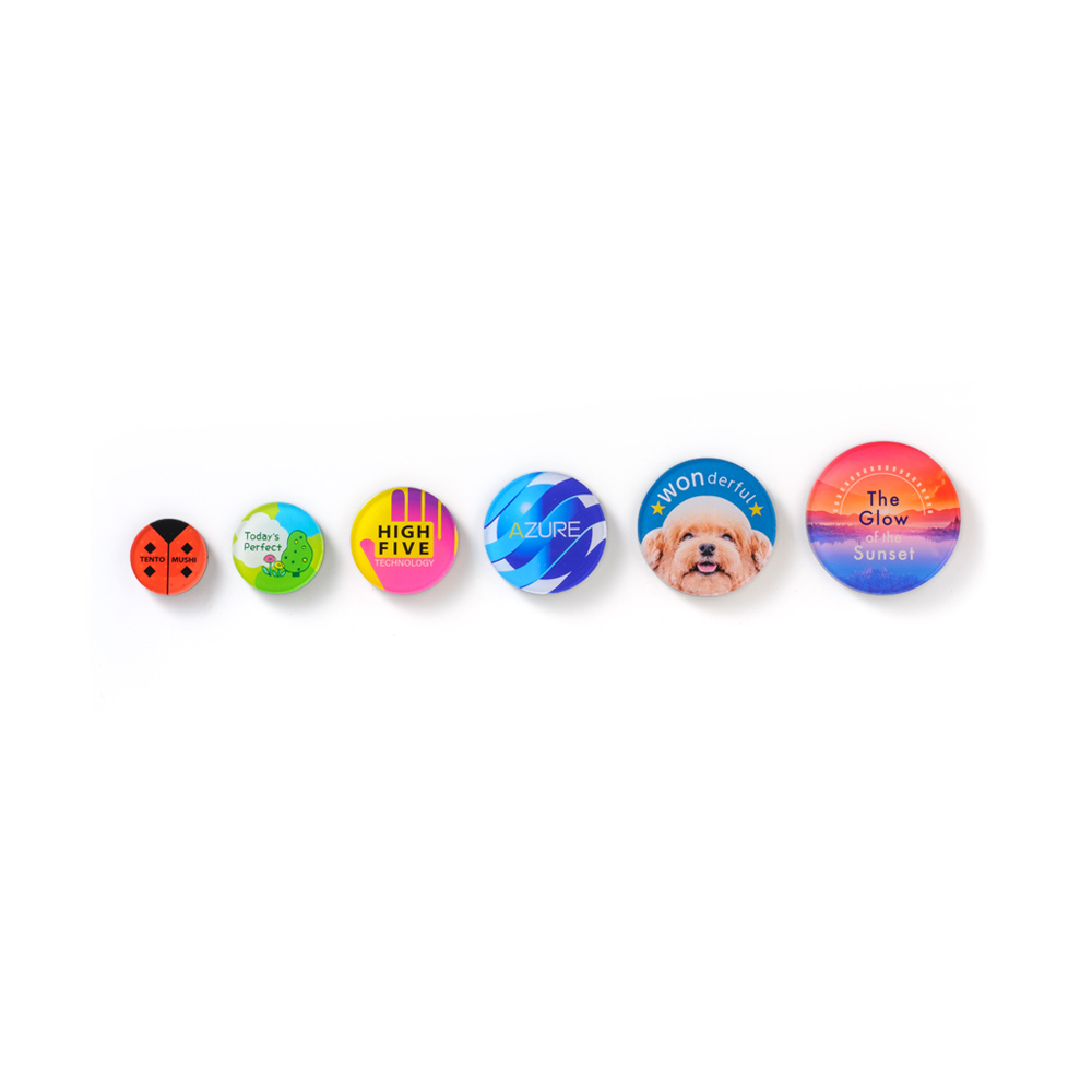 500円玉サイズが目を引く、25mmの丸型マグネット。ほど良い厚みがあって使いやすく、ツヤ出しのアクリルが印刷面を劣化からガード。白押さえを施したフルカラー印刷が、イラストやロゴを色鮮やかにプリントします。