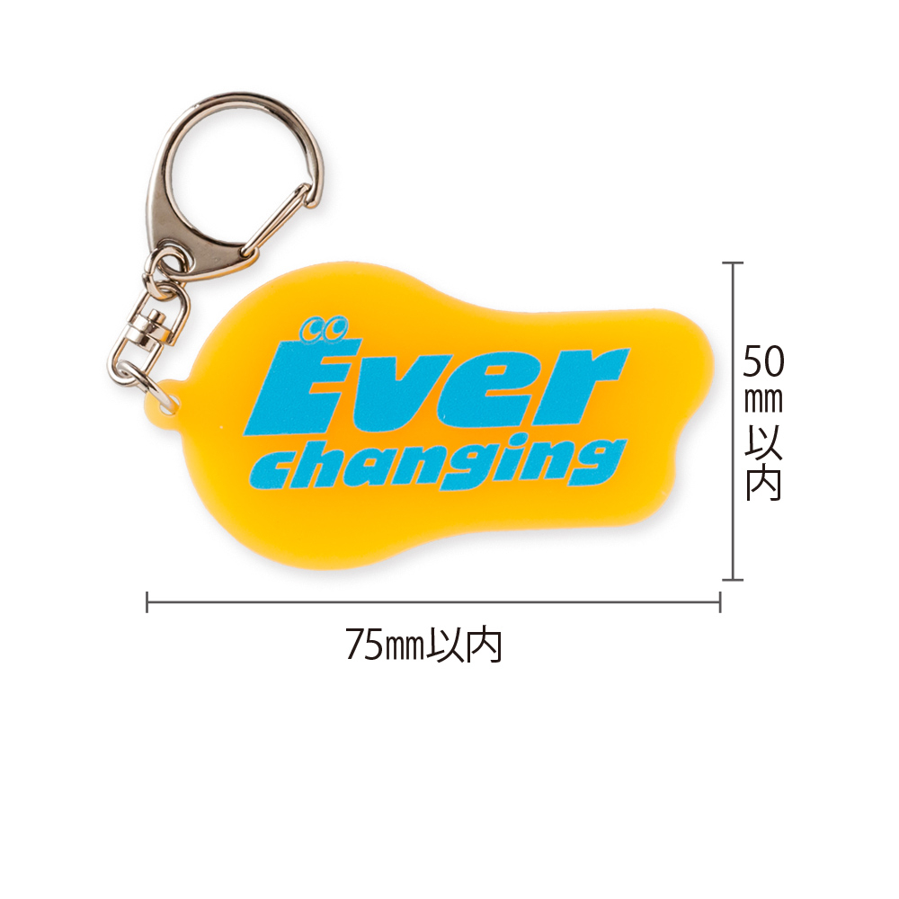 (アクリル色:オレンジ,発光色:イエロー)本体サイズ オリジナル輪郭カット W50×H75mm以内 本体印刷色 片面フルカラー印刷+白押さえ 本体印刷色方法 UVインクジェット印刷 本体付属品 ナスカン付 包装 OPP袋入 テンプレート ダウンロード 納期 【通常納期】