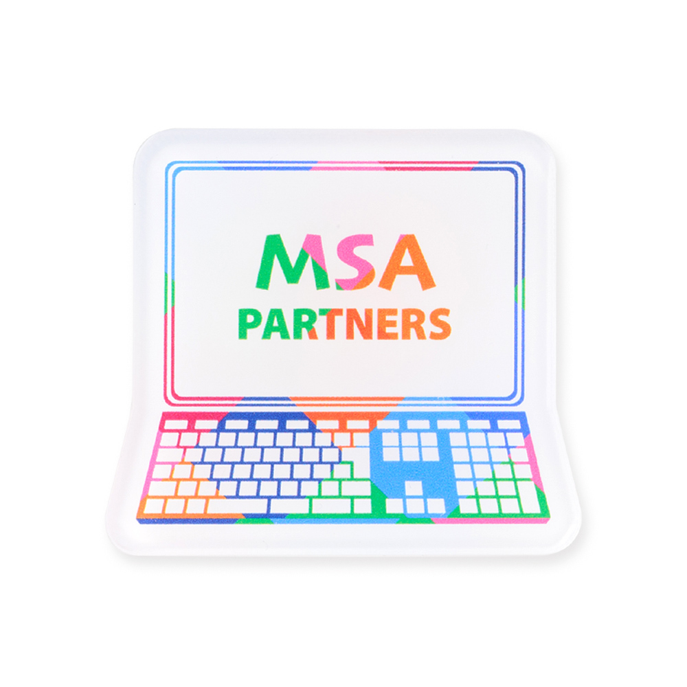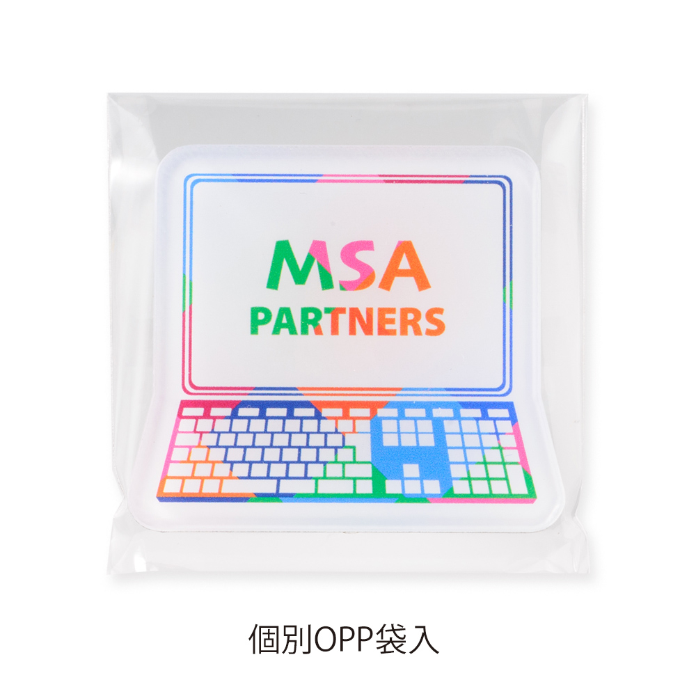 スタンダードな丸型や角型より印象的に仕上がる、オリジナル型のマグネット。大きめサイズで存在感があり、アクリルのほど良い光沢と、白押さえを施した鮮明な印刷が社名やロゴを引き立てます。ほどよい厚みもポイントに。
