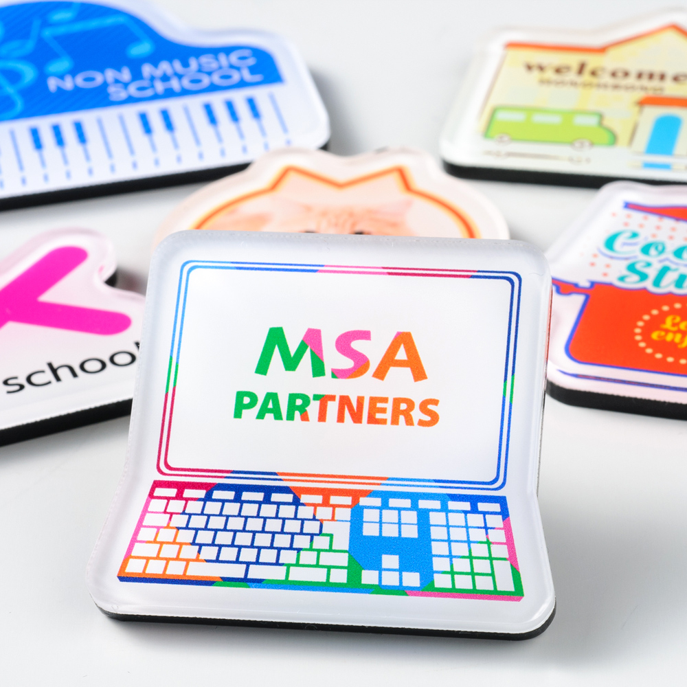オリジナル型のカッティングでしっかりアピールするアクリルマグネット。