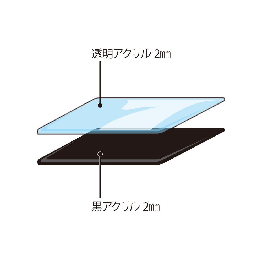 商品名 アクリルマグネット オリジナル形状タイプ W41~45×H41~45mm以内 本体素材 透明アクリル2mm+黒アクリル2mm厚,計4mm厚