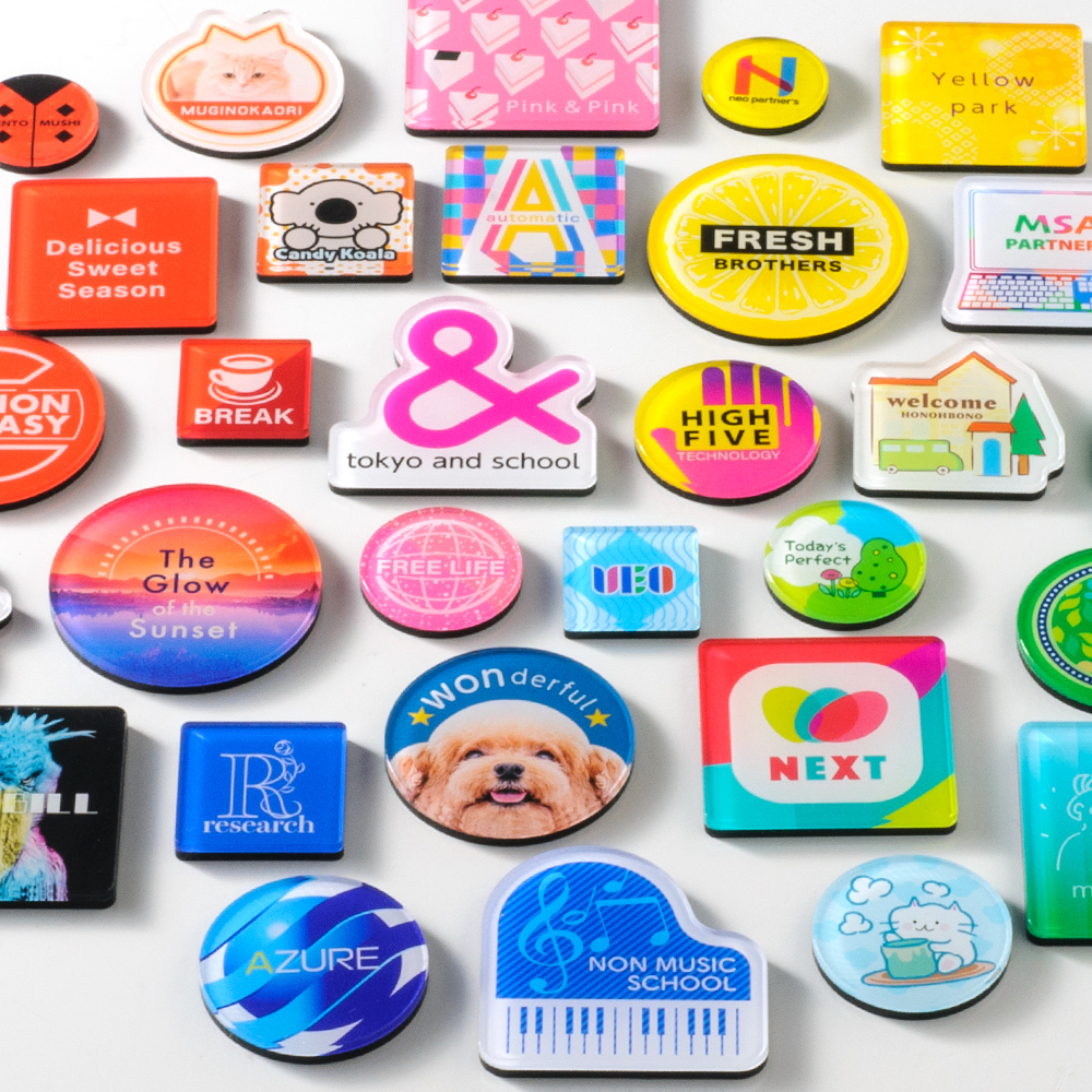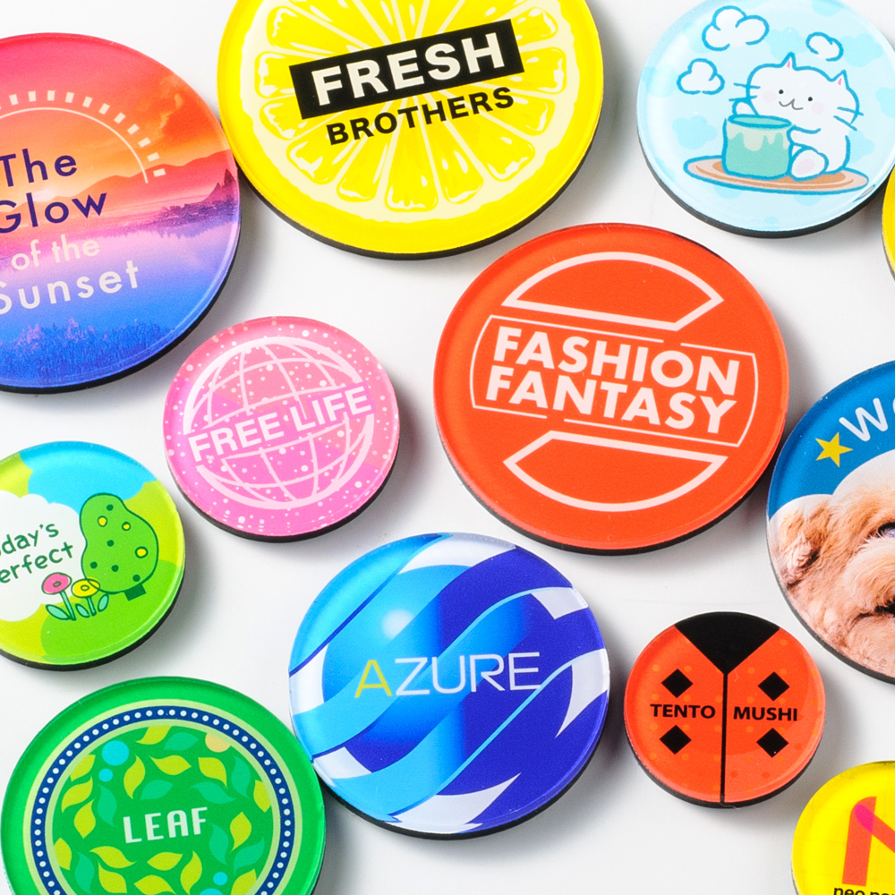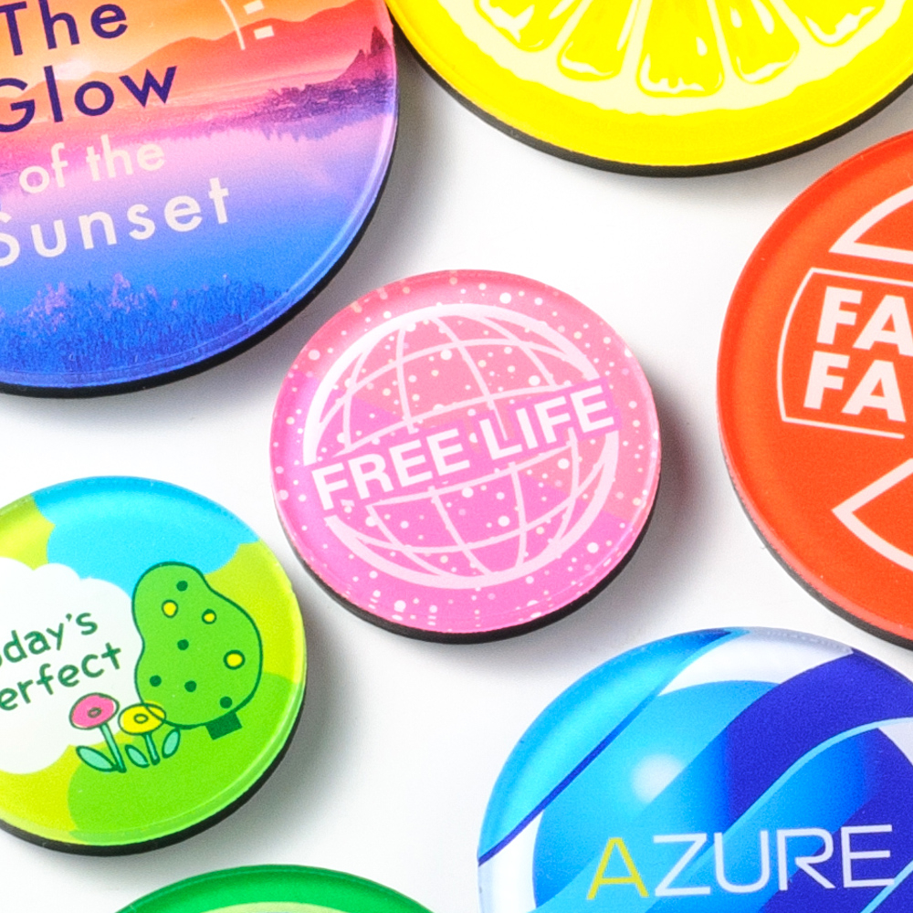 ミニサイズながらも印象的、実用度も高い丸型アクリルマグネットグッズ。