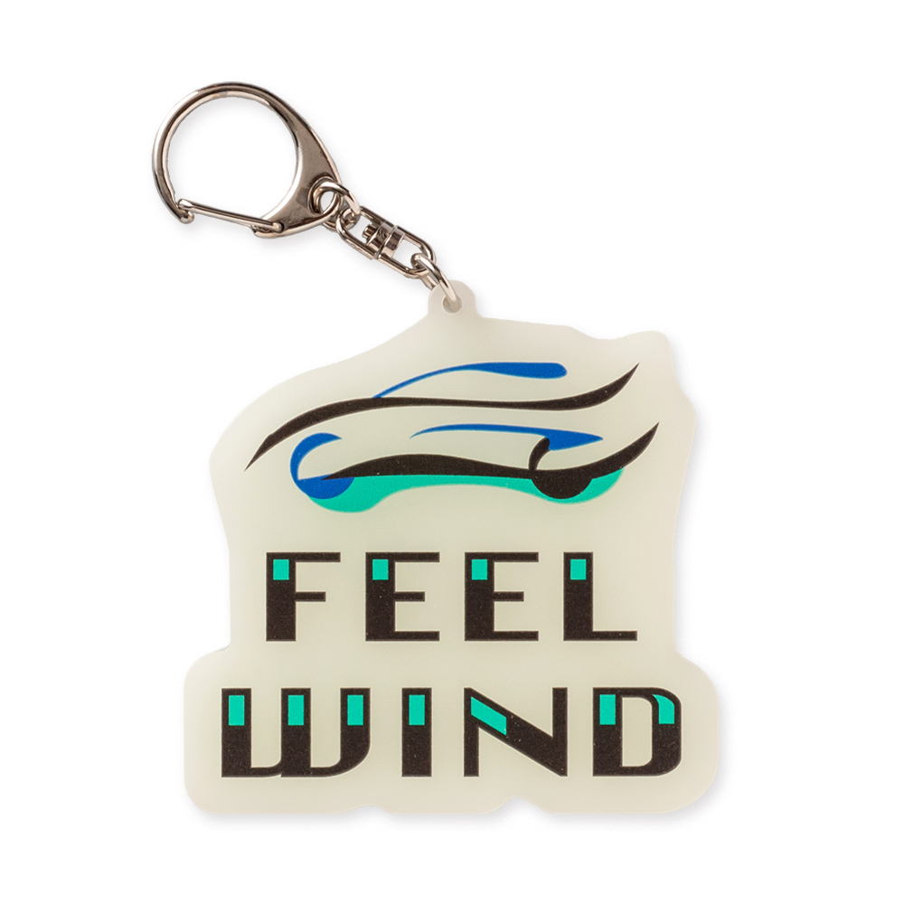 75×75mm以内で自由形状対応。昼間は淡く落ち着いた色味、暗闇で発光することで視覚的インパクトが強まります。ナスカン仕様で持ち運びやすく、物販、ファングッズ、ノベルティ向けに特に人気の定番サイズです。