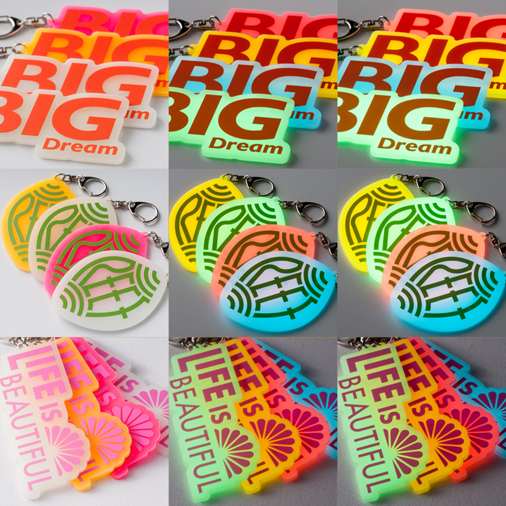 存在感と遊び心を両立。ピンク→オレンジへ変化する蓄光アクリルが映える万能サイズ。