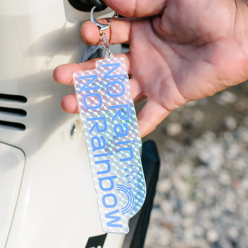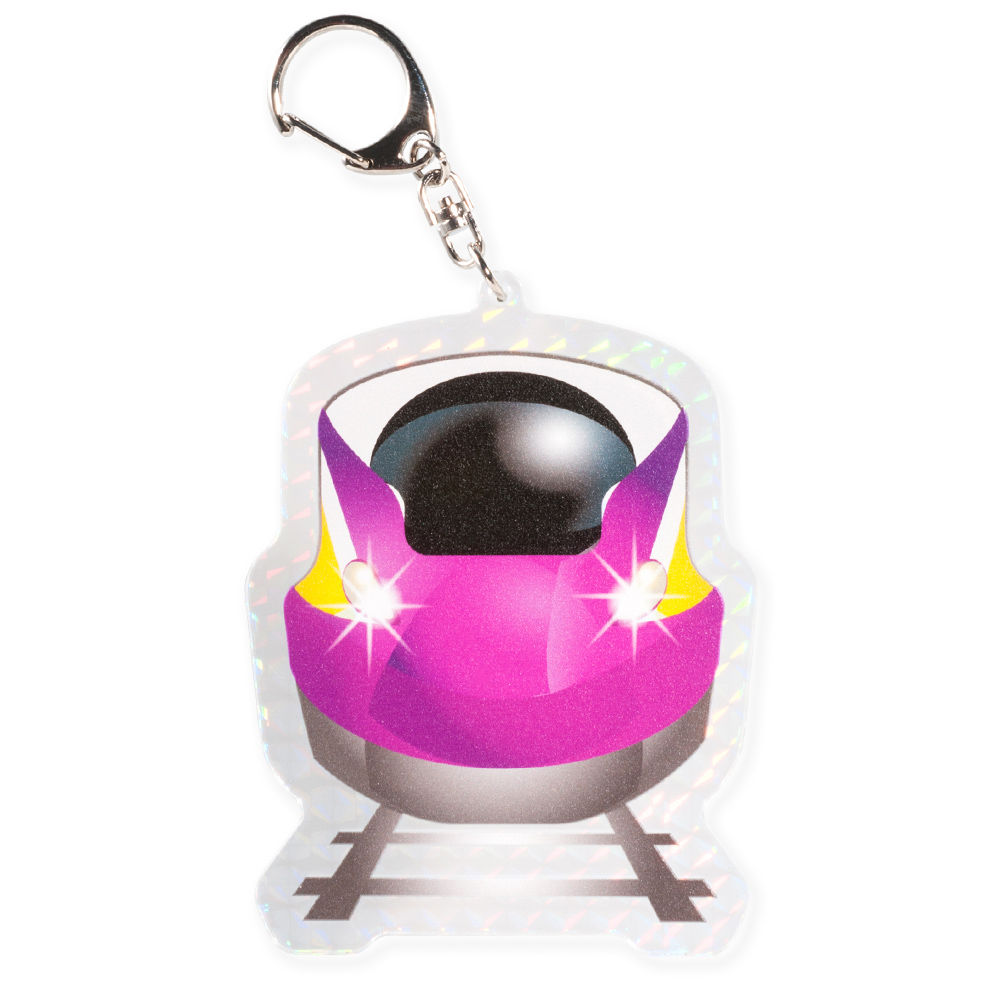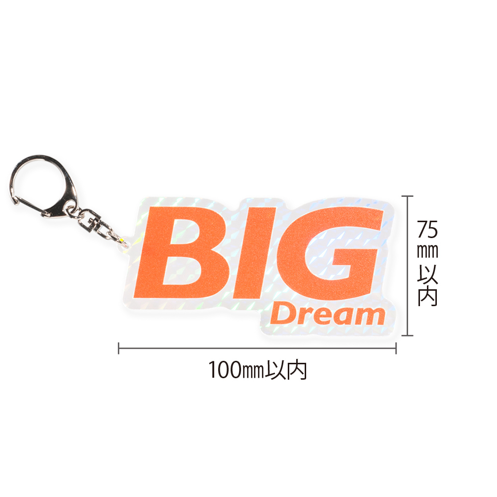 75×100mm以内対応。背景やシンプルなデザインでも、ホログラム加工により光の動きが加わり独自の表情が生まれます。ナスカン付きでバッグチャームにもぴったり。ライブ、イベント物販にも人気のモデルです。