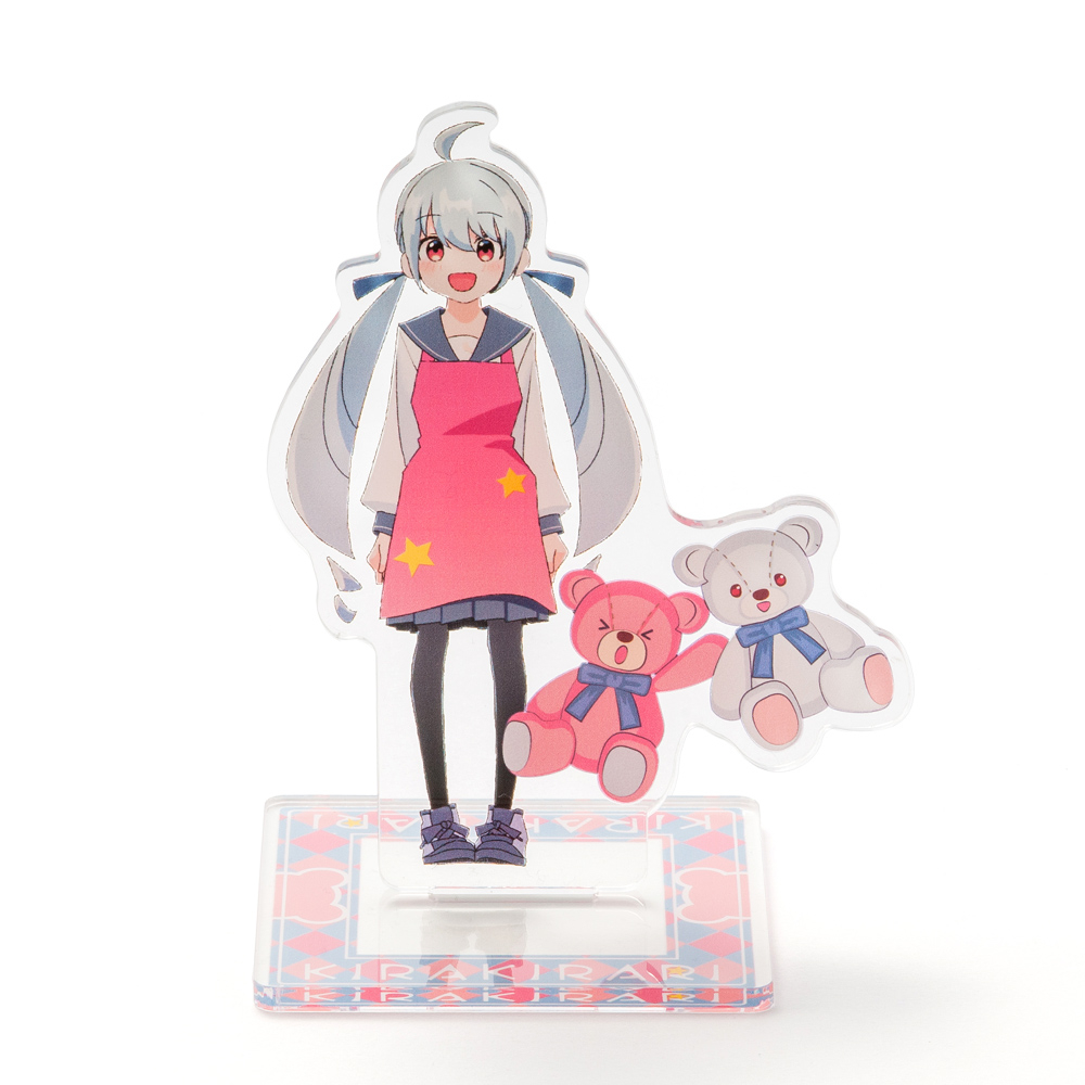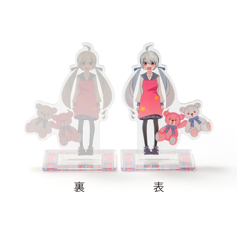 75×100mm以内対応。透明アクリルのクリアな質感とフルカラー印刷の再現性により、印象的なビジュアル表現が可能。展示用、イベント販売、作品スタンドとして幅広く使えるサイズ感です。