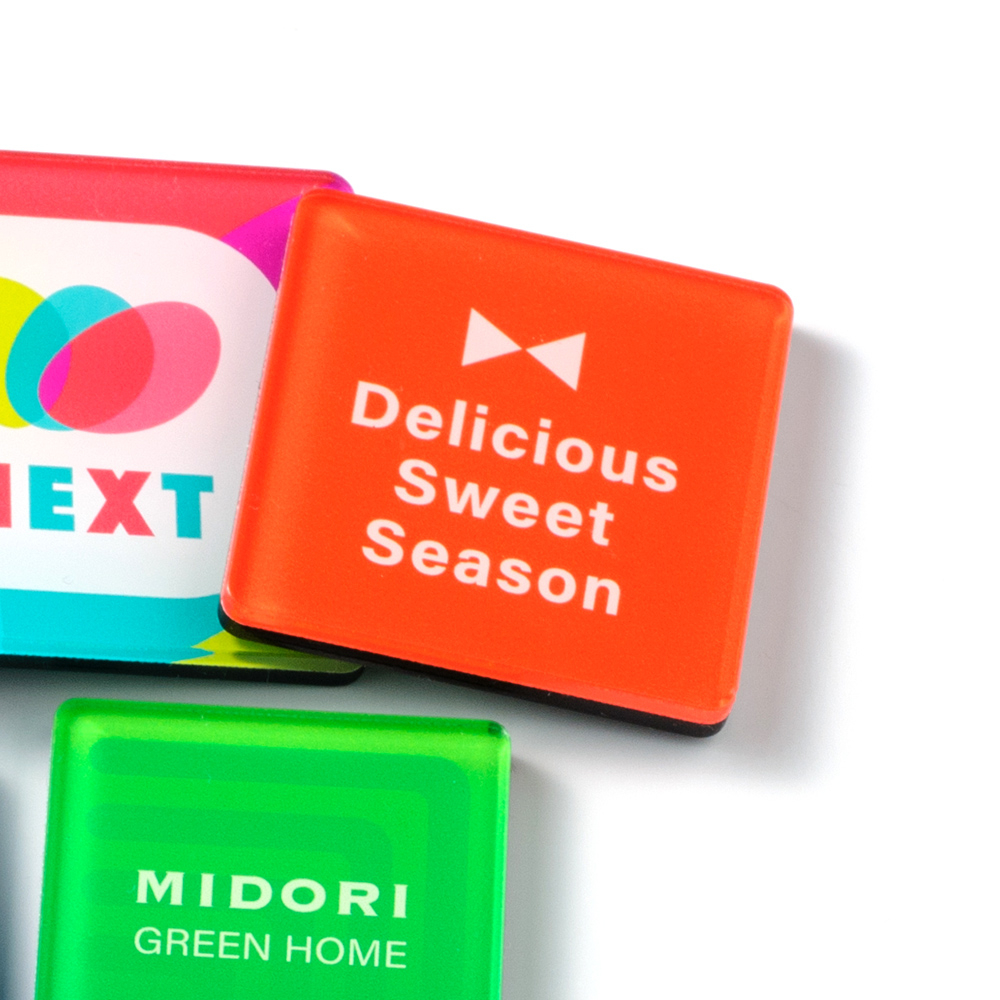 使いやすさも嬉しい、アクリルの角型マグネットグッズ。