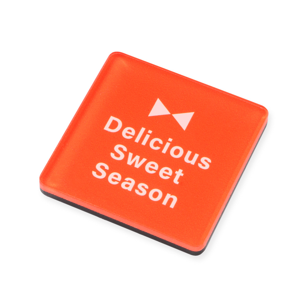 どこに貼ってもパッと目を引く、スクエア型のマグネット。アクリルによるほど良い厚みがあって使いやすく、オフィスでもキッチンでも大活躍。高い磁力を持つネオジウム磁石付きで、冷蔵庫などにしっかりくっつきます。