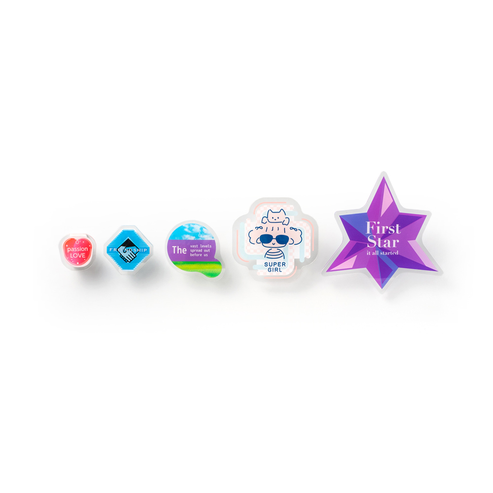 商品名 アクリルクリップ オリジナル形状(片面タイプ)W51~70×H51~70mm以内 本体素材 透明アクリル2mm厚 本体サイズ オリジナル輪郭カット W51~70×H51~70mm以内 本体印刷色 片面フルカラー印刷+白押さえ 本体印刷色方法 UVインクジェット印刷 本体付属品 クリップパーツ付 包装 OPP袋入 テンプレート ダウンロード 納期 【通常納期】