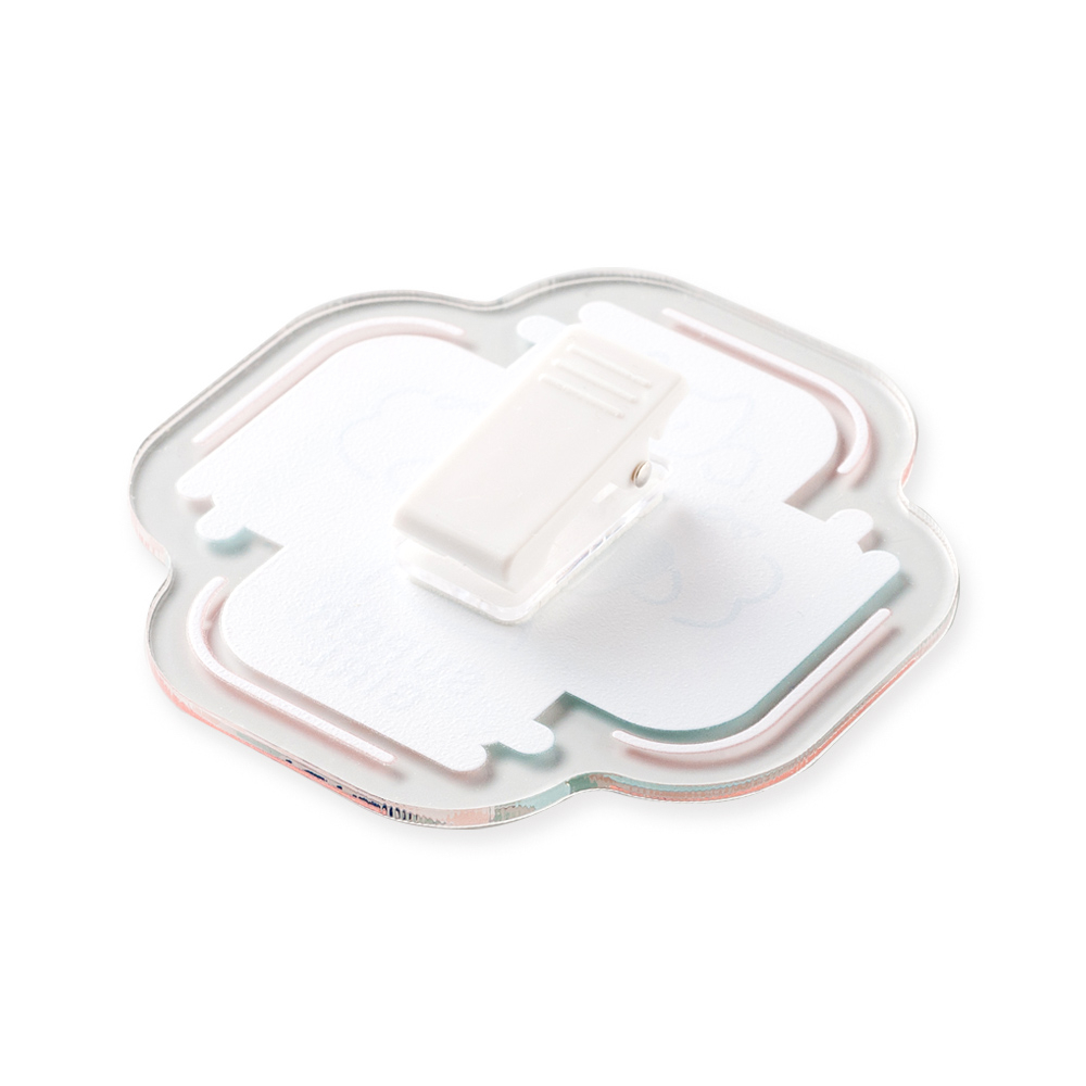 日常のさまざまなシーンで役立つ、アクリル素材の大型クリップ。ポケット口に差し込んで缶バッジ風につけても良し、メモを挟んでペーパーウェイト代わりにしても良し。鮮明なフルカラー印刷で、ロゴやイラストがきれいに映えます。