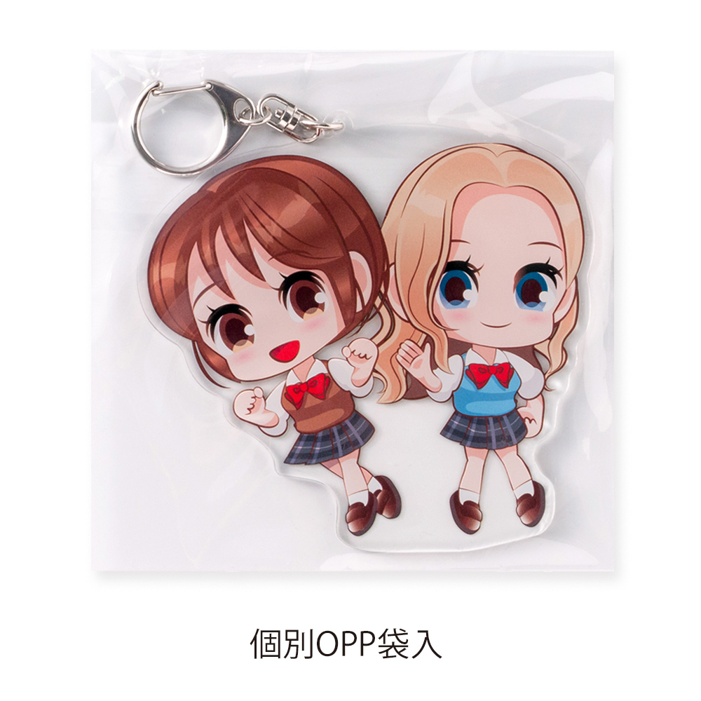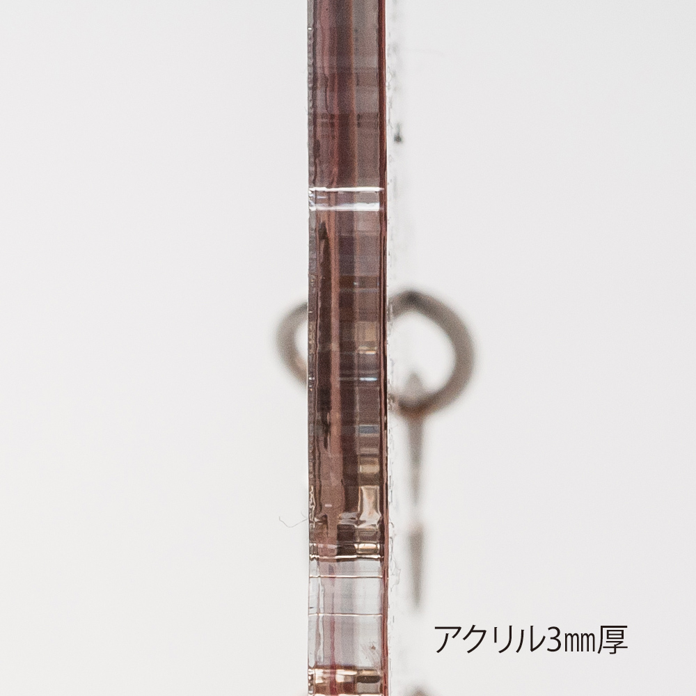 100×100mm以内対応。透明アクリルのクリアさと両面印刷で印刷の奥行き感・密度感が際立ちます。ナスカン仕様で耐久性・実用性にも優れ、販売グッズ・展示用チャーム・撮影小物など幅広く活用できる人気サイズです。