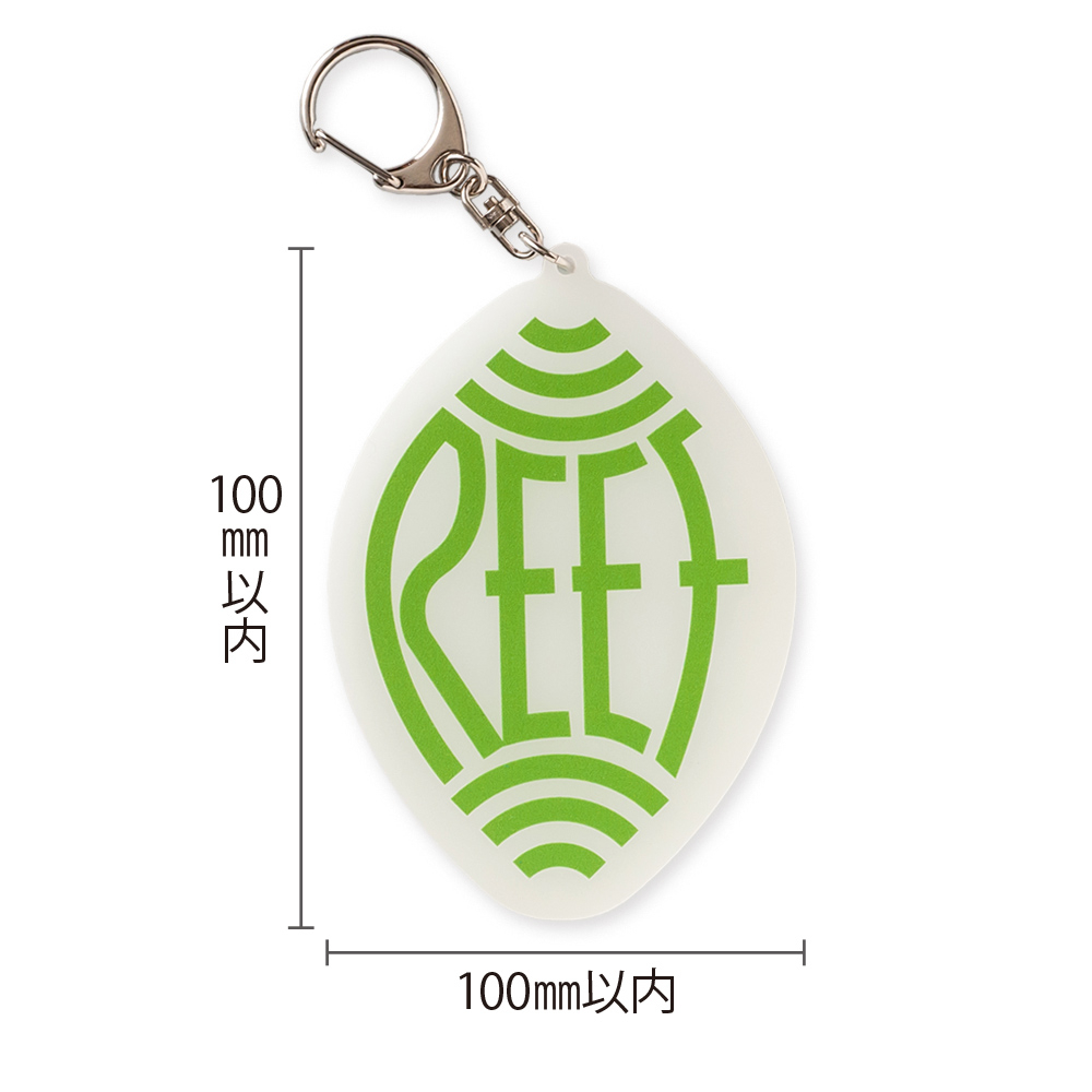 (アクリル色:淡黄色,発光色:ブルー)本体サイズ オリジナル輪郭カット W100×H100mm以内 本体印刷色 片面フルカラー印刷+白押さえ 本体印刷色方法 UVインクジェット印刷 本体付属品 ナスカン付 包装 OPP袋入 テンプレート ダウンロード 納期 【通常納期】