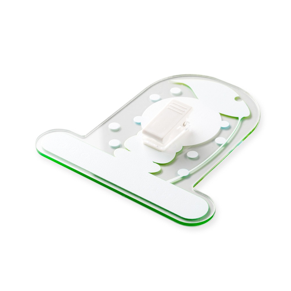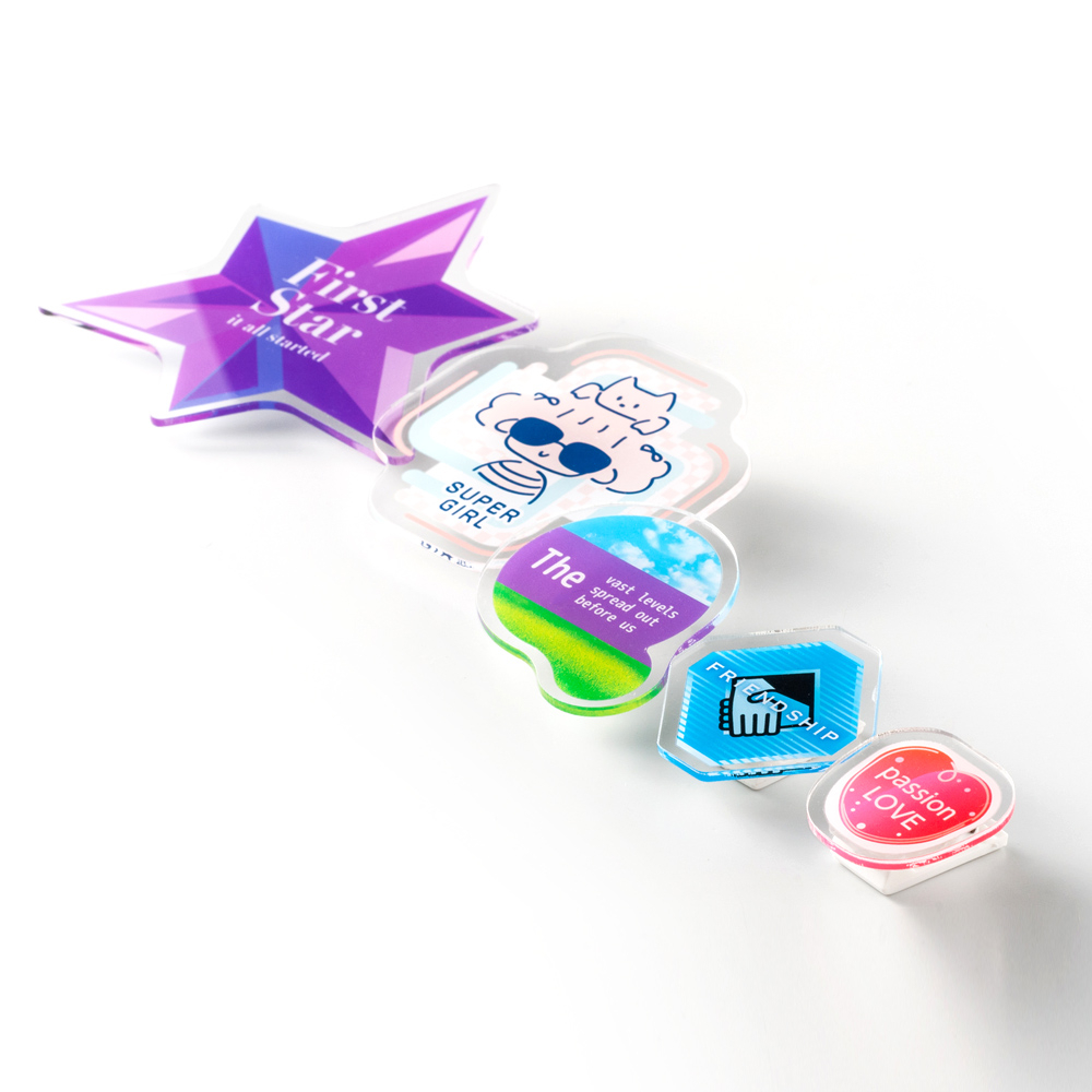 デザイン通りの輪郭に仕上がる、アクリル素材のクリップ。オリジナル型と人目を引くサイズ感で、インパクトのあるアイテムに仕上がります。上着のポケット口に挟んだり、ペーパーウェイト代わりにしたりと、自由な使い方で楽しめます。
