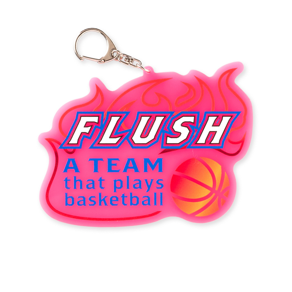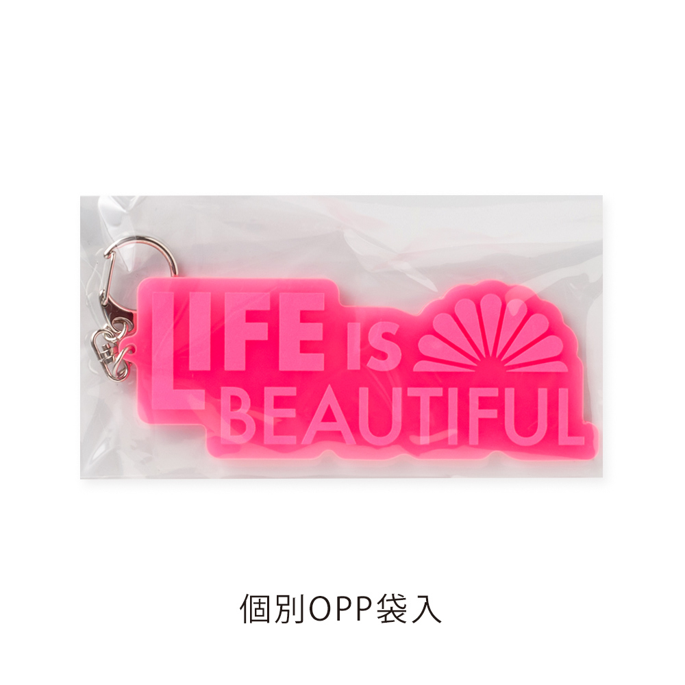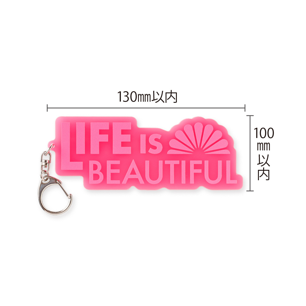 (アクリル色:ピンク,発光色:オレンジ)本体サイズ オリジナル輪郭カット W100×H130mm以内 本体印刷色 片面フルカラー印刷+白押さえ 本体印刷色方法 UVインクジェット印刷 本体付属品 ナスカン付 包装 OPP袋入 テンプレート ダウンロード 納期 【通常納期】