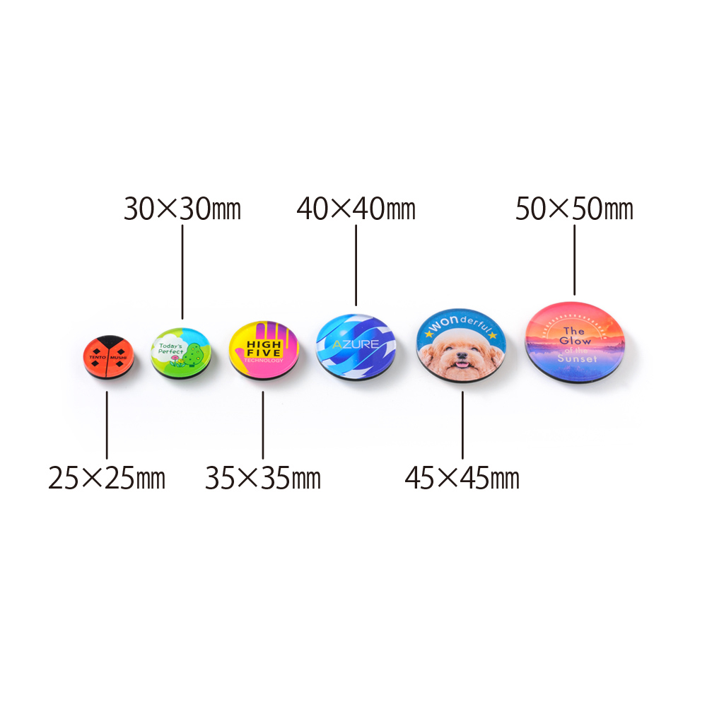 大きめサイズで存在感抜群、50mmの丸型アクリルマグネットグッズ。