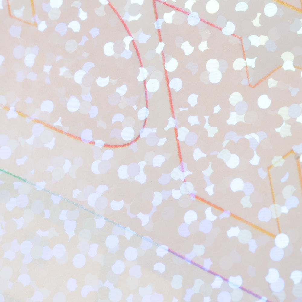 120×150mmまで対応するビッグサイズ。細かなホログラム模様が光を柔らかく反射し、見る角度によって表情が変わる特別仕様。ナスカン付きで展示用・限定生産・コレクターズアイテムとしておすすめです。